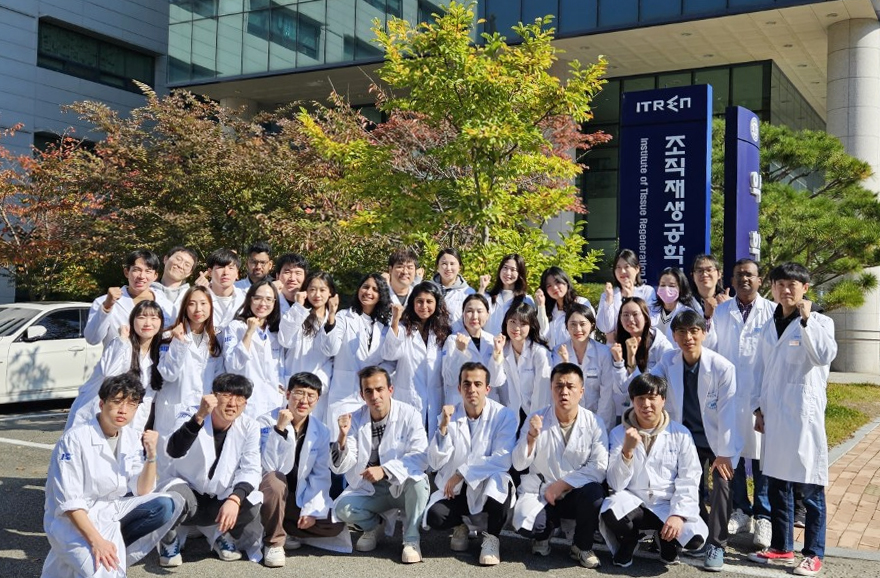 ‘메카노바이올로지’ 연구로 IF 10 이상 논문 10편 연달아 발표 김해원 원장 “기초과학 성과가 실제 임상치료로 이어지는 것이 최종 목표” △ 조직재생공학연구원 우리 대학 조직재생공학연구원(이하 ITREN, 원장 김해원)이 영향력이 큰 국제 학술지(IF 10 이상)에 논문 10편을 연달아 발표하며 세계 최정상급 연구 역량을 입증했다. 특히 이 중 7편의 논문이 학술지 표지를 장식하며 국제 학계의 이목을 집중시키고 있다. 이번 성과의 핵심은 ‘메카노바이올로지(Mechanobiology)’다. 이는 세포가 받는 물리적 힘과 그 반응을 연구하는 첨단 분야로 ITREN은 이를 실제 치료에 적용하고자 노력하고 있다. 혁신적 성과를 이끌고 있는 김해원 원장을 만나 비결을 들었다. △김해원 원장(치의예과) ■ Q1. 최근 1년간 7편의 논문이 표지논문으로 선정되는 등 최정상급 연구집단으로 성장한 비결은 무엇인가요? Advanced Science뿐 아니라 ACS Nano 등 임팩트 팩터 10 이상 저널에서 지난 해에만 총 7편이 표지논문으로 선정되었습니다. 국내외적으로 대단한 성과라 볼 수 있죠. 지난 20년간 구성원 모두가 ‘국내’가 아닌 ‘세계 최고 수준의 연구 그룹과 경쟁한다’는 마음으로 꾸준히 달려온 결과가 하나둘 결실을 맺고 있다고 생각합니다. ■ Q2. ‘조직재생’이 궁극적으로 추구하는 비전은 무엇인가요? 우리 몸은 나이가 들거나 병이 들면 손상되고 퇴화됩니다. 이를 다시 복구하는 생체 메커니즘이 바로 ‘재생’이죠. 이 과정을 모방하거나 촉진하기 위해 의학, 생명과학, 공학이 융합되어야 합니다. 저희의 최종 목표는 이러한 융합연구를 통해 “기초과학의 성과가 실제 임상치료로” 이어지도록 하는 것입니다. ■ Q3. ITREN이 주목받는 ‘메카노바이올로지’란 무엇인지 쉽게 설명해주세요. 우리 몸의 세포와 조직은 화학 신호뿐 아니라 외부의 ‘밀고 당기는 힘’, 전기장, 기질의 물성 등에도 반응합니다. 이런 물리적 자극이 세포의 운명을 바꾸기도 하죠. 바로 이런 현상을 규명하고 치료로 연결하는 연구가 메카노바이올로지입니다. ITREN은 이 분야에서 국내 최초로 구성된 연구집단으로, 선도연구센터(MRC)를 통해 관련연구를 주도하고 있습니다. ■ Q4. ITREN의 연구 성과가 실제 우리 삶에는 어떻게 적용되고 있나요? 나이가 들며 약해지는 뼈를 대체하는 인공 뼈이식재나 치과용 임플란트 같은 기술은 이미 기술이전을 통해 상용화되어 우리의 삶 속에 들어와 있습니다. 또한 현재 연구 중인 줄기세포 전달용 스캐폴드와 조직공학 기술들은 향후 손상된 무릎, 피부, 신경 등을 대체할 수 있는 차세대 치료법으로 발전할 것입니다. ■ Q5. 다양한 전공과 국적의 연구자들이 시너지를 내는 ITREN만의 특별한 문화가 있나요? ITREN에는 생물학, 화학, 공학, 의치학 등 다양한 전공의 연구자들이 10여 개국에서 모여있습니다. 연구에 대한 열정이 있다면 누구나 환영이에요. 영어로 진행되는 세미나나 해외 특강, 소규모 연구 모임 등을 자주 열며 서로의 문화를 공유하고 연구로 연결시키는 열린 분위기가 최대 강점입니다. ■ Q7. 연구원이 앞으로 도전할 다음 목표가 궁금합니다. 거대한 미래만 좇기보다, 지금 이 순간 자신이 하는 연구 속에서 기쁨과 보람을 찾길 바랍니다. 그 즐거움이야말로 평생 이 길을 걸어갈 원동력이 되니까요. 궁극적으로는 질병이나 사고로 손상된 조직을 필요로 하는 수많은 환자들에게, 우리의 연구가 실제 치료와 회복으로 이어지는 그날을 진심으로 꿈꾸고 있습니다. ■ 세계 학계가 주목한 ITREN의 주요 연구 성과 대표 성과 중 하나는, 세포가 외부의 당기는 힘을 어떻게 감지하고, 그 신호가 핵(유전자가 있는 곳)에 전달되어 유전자 스위치(발현 조절)를 어떻게 바꾸는지 정밀하게 보여준 연구다. 국제학술지 『Advanced Science』(IF=14.1; 심혜원 학생 등 참여) 표지로 선정된 이 논문은, 외부의 당김 자극이 세포골격을 거쳐 핵까지 이어지며 유전자 보호 모드를 켜는 과정을 규명하였다. 한마디로 “세포는 힘을 느끼면 유전자를 바꾸어 스스로를 지킨다”는 원리를 증명한 셈이다. 논문명은 “Temporal Stretch‐Induced Nuclear Mechanosensing Coordinates Early Chromatin Accessibility and Genome Protection(시간적 신장(당김) 유도형 핵 기계감응을 통한 초기 염색질 접근성 및 유전체 보호 조율)”. 줄기세포 치료의 효율을 높이는 방법도 제시했다. 생체재료 분야 저명 학술지인 『Bioactive Materials』(IF=20.3, 윤여균 학생, 이준희 교수 등 참여)에 실린 이 연구는 인체와 비슷한 3차원 하이드로젤 안에서 ‘말랑함’의 정도를 조절하면 줄기세포의 모양과 신호가 변하고, 그 변화가 혈관 생성과 염증 완화 능력을 높인다는 점을 밝혀냈다. 복잡한 약물 조합 없이도, 세포가 딛는 ‘발판’의 물성만 바꿔 치료 효과를 끌어올릴 수 있음을 보여준 데 의의가 있다. 논문명은 “Mechanosignaling and 3D morphological adaptation of MSCs in response to hydrogel rigidity underpin angiogenic and immunomodulatory efficacy for ischemic injury regeneration(하이드로겔 강도에 반응하는 중간엽 줄기세포의 기계적 신호 전달 및 3차원 형태적 적응이 허혈성 손상 재생을 위한 혈관 형성 및 면역 조절 효능을 