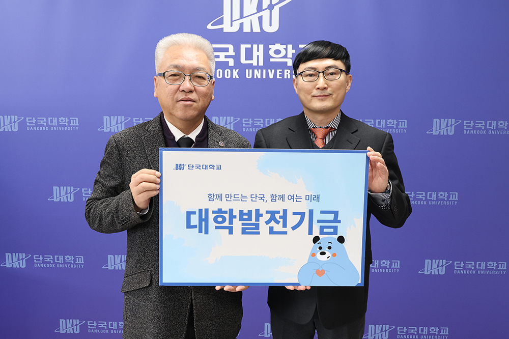지난 14일(수) 죽전캠퍼스 범정관에서 불교학생회 동문회와 경제학과장학회의 대학발전기금 전달식이 연이어 개최됐다. 이번 전달식은 동문들의 지속적인 나눔을 통해 대학 발전과 후배 양성을 응원하는 뜻을 함께 나누는 자리로 마련됐다. 불교학생회 동문회, 발전기금 1,000만 원 기탁…누적 2,000만 원 △ 불교학생회 동문회 발전기금 전달식 단체사진(왼쪽부터 김재일 대외부총장, 우상진 운영위원, 신은종 대외협력처장) 불교학생회 동문회(명예회장 홍순도, 행정학과 72학번)는 발전기금 1,000만 원을 기탁했다. 작년부터 기부를 시작한 불교학생회 동문회의 누적 기부금은 2,000만 원이 됐다. 기부금은 불교동아리의 안정적인 운영과 학생 활동 지원을 위해 활용될 예정이다. 전달식에는 김재일 대외부총장, 신은종 대외협력처장, 우상진 운영위원(건축공학과 79학번) 등이 참석해 기부의 의미를 더했다. 우상진 동문은 “불교학생회가 앞으로도 학생들에게 정신적 쉼과 성찰의 공간으로 자리하길 바라는 마음에서 뜻을 모았다”며 “후배들이 안정적인 환경에서 다양한 활동을 이어가는 데 작은 힘이 되길 바란다”고 밝혔다. 경제학과장학회, 발전기금 1,000만 원 기탁…누적 1억 6천여만 원 △ 경제학과장학회 발전기금 전달식(왼쪽부터 신은종 대외협력처장, 이창희 이사, 김재일 대외부총장, 송정환 회장, 김명중 이사, 서문석 이사) 이어 경제학과장학회(회장 송정환, 경제학과 87학번)가 경제학과 장학기금으로 1,000만 원을 기탁했다. 이번 기부로 경제학과장학회의 누적 기부액은 1억 6,175만 원에 이른다. 전달식에는 김재일 대외부총장, 신은종 대외협력처장, 송정환 장학회장, 서문석 이사(경제학과교수, 경제학과 85학번) 이창희 이사(경제학과 88학번), 김명중 이사(경제학과 07학번) 등이 참석했다. 송정환 회장은 “경제학과 동문들의 정성이 후배들의 학업과 진로 설계에 실질적인 도움이 되길 바란다”며 “앞으로도 장학회를 중심으로 지속적인 나눔을 이어가겠다”고 밝혔다. 김재일 대외부총장은 “동문 여러분의 꾸준한 관심과 후원이 우리 대학의 교육 경쟁력을 높이는 든든한 기반이 되고 있다”며 “기탁해 주신 소중한 발전기금이 학생들의 성장과 대학 발전으로 이어질 수 있도록 책임 있게 활용하겠다”고 감사의 뜻을 전했다. [대학뉴스 제보] 죽전 홍보팀 : 031-8005-2032~5, 천안 홍보팀 : 041-550-1061
