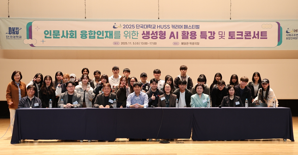 “전공을 무기로, 비전공을 기회로” AI 특강·멘토링·토크콘서트로 진로 설계 지원 사회구조변화대응융합인재양성사업단(단장 유현실)은 지난 5일(수) 혜당관 학생극장에서 'DKU 인문사회 융합인재를 위한 커리어 페스티벌'을 개최했다. ▲인문사회융합인재 커리어 페스티벌 참석자 단체 사진 이번 행사는 재학생들의 진로 설계와 취업 역량 강화를 위해 마련됐으며 ▲전공별 1:1 커리어 컨설팅 ▲생성형 AI 활용 특강 ▲전문가 토크콘서트 등으로 구성되어 사회과학·인문학 계열 학생들이 자신의 전공과 진로를 효과적으로 연결할 수 있도록 지원했다. 김오영 혁신융합대학 총괄사업단장(교학부총장)이 축사를 통해 “"4차 산업혁명과AI 시대를 맞아 기술과 인문학적 통찰력을 겸비한 융합형 인재의 역할이 중요해졌다"라며 "이번 페스티벌이 자신의 잠재력을 발견하고 AI 시대 미래 사회의 주역으로 성장하는 계기가 되길 바란다"고 격려했다. ▲7개 전공별로 전문 멘토들이 참여해 1:1 맞춤형 진로·취업 상담을 진행했다. 혜당관 로비에 마련된 상담 부스에서는 정치외교학과, 상담학과, 행정학과, 도시계획·부동산학부, 사학과, 철학과, 통계데이터사이언스학과 등 7개 전공별로 전문 멘토들이 참여해 1:1 맞춤형 진로·취업 상담을 진행했다. 참가 학생들은 ‘나의 강점은 무엇일까’, ‘전공을 살린 커리어 설계’, ‘자기소개서·면접 코칭’ 등 주제로 실질적인 피드백을 받았다. 이번 멘토단에는 카카오모빌리티, 국민연금공단, 국립공원공단 등 다양한 산업 분야의 전문가들이 참여해 각자의 직무 경험을 토대로 현실적인 조언을 전했다. ▲토크콘서트에서는 학생들이 직접 작성한 질문지를 토대로 실시간 Q&A가 진행됐다. 오영주 강사가 진행한 ‘생성형 AI 활용 스킬’ 특강에서는 문서 작성, 번역, 영상 제작 등 최신 생성형 AI 기술의 실제 적용 사례와 프롬프트 설계 실습이 이뤄져 학생들의 높은 호응을 얻었다. 이어 열린 전문가 토크콘서트에서는 ‘전공‧비전공 브릿지’, ‘자격증 ROI(투자 대비 효과)’, ‘2025 채용 트렌드’ 등을 주제로 취업 시장 변화와 AI 면접·수시채용 대응 전략을 공유했다. 현장에서는 학생들이 직접 작성한 질문지를 토대로 실시간 Q&A가 진행됐으며 우수 질문자에게는 경품이 제공됐다. 유현실 단장은 “학생들이 전공별 강점을 기반으로 진로를 설계하고, AI 활용 역량까지 함께 강화할 수 있도록 프로그램을 구성했다”며 “이번 캠프를 시작으로 지속적인 멘토링과 후속 특강을 통해 학생들의 커리어 성장에 실질적인 도움을 주겠다”고 밝혔다. [대학뉴스 제보] 죽전 홍보팀 : 031-8005-2032~5, 천안 홍보팀 : 041-550-1061