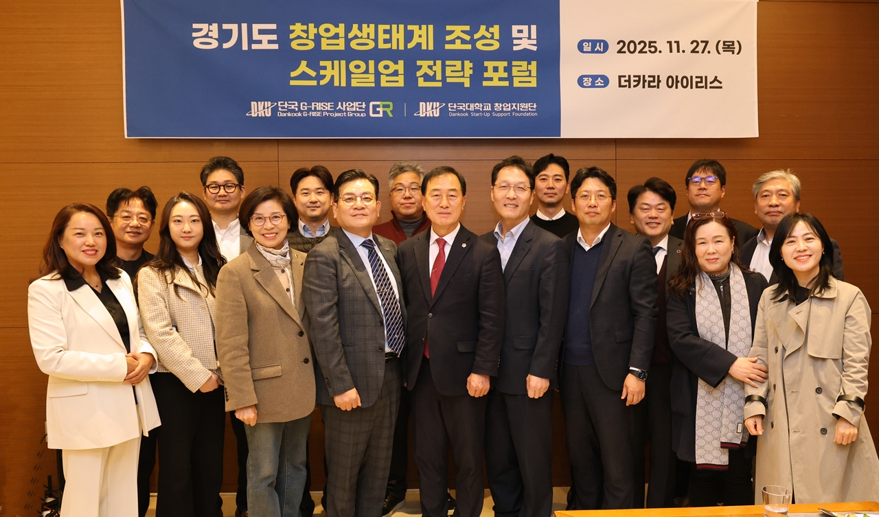 “산·학·연·관 협력 기반 강화… 경기남부권 스케일업 생태계 전략 공유” 창업지원단·단국G-RISE사업단이 공동으로 27일(목) 경기도 성남시에서「제4회 경기도 창업생태계 조성 포럼 : Dankook Round」를 개최했다. 이번 포럼은 경기남부권 창업 및 중소기업 성장을 위해 산·학·연·관이 함께 정책을 공유하고, 지속 가능한 지역 창업 생태계 조성 방안을 모색하기 위해 마련됐다. ▲ 창업지원단이 「제4회 경기도 창업생태계 조성 포럼 : Dankook Round」를 개최했다. ▲ 오좌섭 산학부총장이 지‧산‧학‧연을 아우르는 협력 구조가 지역 스타트업의 성장 잠재력을 키운다라고 강조했다. 포럼에는 ▲경기도의회 미래과학협력위원회 ▲경기지방중소벤처기업청 ▲경기창조경제혁신센터 ▲경기도경제과학진흥원 등 창업지원 유관기관을 비롯해 우리 대학 창업보육센터 스타트업 대표들이 참석해 경기남부권 스케일업 생태계 강화를 위해 의견을 나눴다. 남정민 단장은 개회사를 통해 “우리 대학은 지역 창업기업의 스케일업을 위해 창업보육센터, 초기창업패키지사업단, 산학협력단, 단국G-라이즈사업단 등 캠퍼스 내 모든 창업지원 기능을 통합 운영하고 있다”라며 “오늘 포럼을 계기로 지역 기반의 혁신 창업생태계 조성에 대학의 역할을 더욱 확대해 나가겠다”고 밝혔다. ▲ 창업지원단은 ‘대학 BI 기반 스케일업 지원모델’을 제시하며 경기남부권 스케일업 생태계 강화를 위한 의견을 나눴다. 포럼은 조찬 네트워킹을 시작으로 개회, 주제발표, 종합토론 순으로 진행됐다.첫 번째 주제발표에서 서영미 단국대 창업보육센터 차장은 ‘대학 BI 기반 스케일업 지원모델’을 제시하며 창업보육센터의 성장 단계별 지원 전략과 대학-지자체-산업체 연계 프로그램을 소개했다 . 이어 이광일 교수(글로벌벤처전략연구소) ‘글로벌 스케일업 촉진 전략’을 발표하며 스타트업의 해외 진출 경쟁력을 강화하기 위한 국제 네트워크 및 시장 분석 기반의 성장 전략을 공유했다. 종합토론 세션에서는 참여 기관 전문가들이 ▲경기도 스케일업 지원체계 고도화 ▲스타트업 투자 유입 확대 ▲중소기업 글로벌 진출 촉진 ▲대학 기반 창업 플랫폼의 역할 등에 대해 심도 있는 의견을 나눴다. 참석자들은 “산·학·연·관의 긴밀한 협력이 지역 창업 생태계의 지속 가능성을 좌우한다”고 강조했다. 오좌섭 산학부총장은 “지‧산‧학‧연을 아우르는 협력 구조가 지역 스타트업의 성장 잠재력을 키운다”며 “단국대는 창업기업 발굴부터 글로벌 진출까지 전 주기를 밀착 지원하는 대학 창업 플랫폼을 강화해 경기남부권 대표 창업거점으로 자리매김하겠다”고 밝혔다. #단국대 #창업지원단 #단국G-RISE사업단 #창업포럼 [대학뉴스 제보] 죽전 홍보팀 : 031-8005-2032~5, 천안 홍보팀 : 041-550-1061