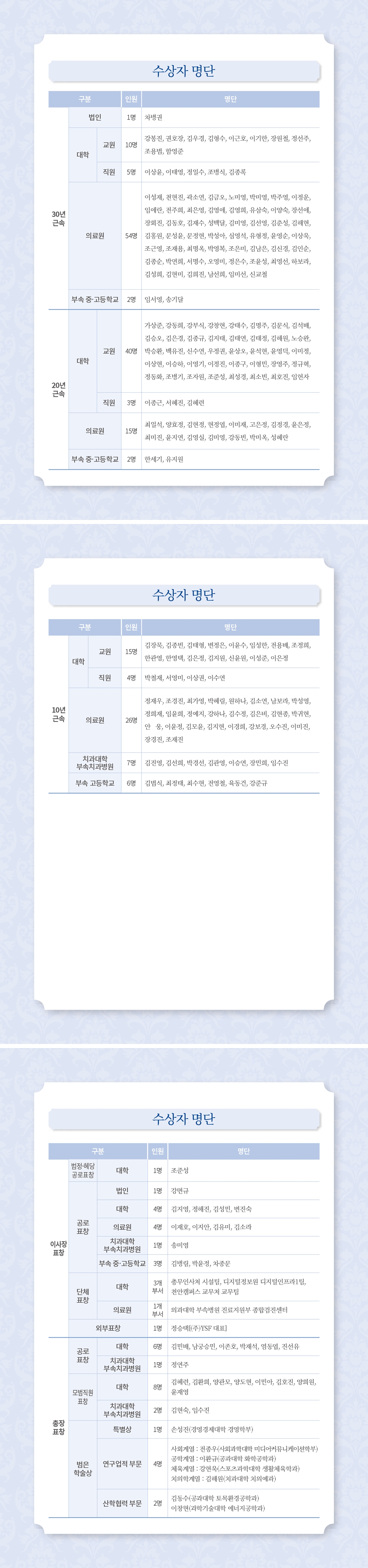 ▲개교기념식 수상자 명단