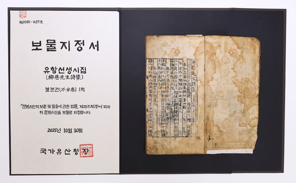 | 석주선기념박물관 소장 「유항선생시집」, 국가지정문화유산 보물 지정 | |