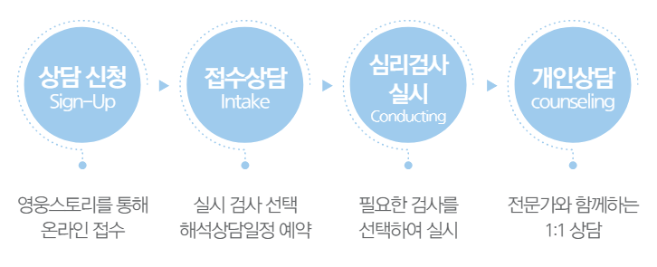 - 진행 중 심리검사도 진행 가능 (심리검사 신청 시, 개인상담을 제외하고 심리검사 및 해석상담만 진행)