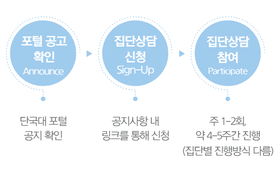 대학생활상담센터에서는 학생들의 학교적응과 성장을 돕기 위해 다양한 집단상담을 운영하고 있습니다.