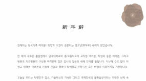 친애하는 단국가족 여러분! 희망과 도전이 공존하는 병오년(丙午年) 새해가 밝았습니다. 한 해의 새로운 출발점에서 단국대학교와 중,고등학교의 교직원 여러분, 학생과 동문 여러분, 그리고 병원과 치과병원의 구성원 여러분께 깊은 감사의 말씀과 새해 인사를 올립니다.