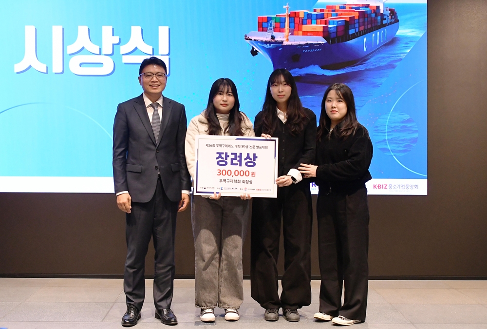 무역학과 재학생팀이 산업통상부 무역위원회가 지난 14일 개최한 「제26회 무역구제제도 대학(원)생 논문발표대회」에서 우수상 2팀, 장려상 1팀을 수상했다. 이번 대회는 무역위원회가 지난 2000년부터 매년 개최되어 온 행사로 무역구제제도(반덤핑, 상계관세, 세이프가드 등)와 관련된 대학(원)생들의 관심과 전문 역량을 강화하기 위해 마련됐다. ▲ 대회에서 수상한 무역학과 재학생들이 기념촬영을 하고 있다. 수상자는 ▲박현진 외 2명(3학년) 팀은 「미국 PMS 적용 기준 및 근거에 대한 WTO 반덤핑협정의 합치성 판단」 ▲이은빈 양(4학년) 「WTO 보조금 협정상 사실상 특정성 기준 분석」 ▲Keith Tagabucba 외 2명(교환학생) 팀은 「China’s Steel Subsidies: Global Implications in Steel Industries and WTO Competency」 등 이다. 박현진 학생은 “논문 작성을 위해 토론수업과 발표를 병행하며 생각의 폭을 넓힐 수 있었다”며 “열정적으로 지도해주신 최창환 교수님과 함께해준 팀원들에게 감사하다”고 소감을 전했다. 지도교수 최창환 교수는 “우리 무역학과 학생들은 지난 2009년부터 올해까지 17년간 한 해도 빠짐없이 논문대회에서 대상·최우수상·우수상을 수상하며 뛰어난 연구 역량을 입증해 왔다”며 “특히 올해는 프랑스, 독일, 멕시코, 인도네시아, 필리핀 등 다양한 국가에서 온 교환학생들이 적극적으로 참여해 값진 성과를 거둬 더욱 뜻깊다”고 밝혔다. #단국대 #수상 #무역학과 # 무역구제제도 #논문대회 [대학뉴스 제보] 죽전 홍보팀 : 031-8005-2032~5, 천안 홍보팀 : 041-550-1061