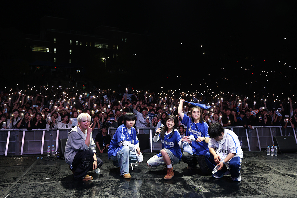 △ 비가 오는 궂은 날씨에도 공연을 진행한 아티스트 '잔나비'와 공연장을 가득 메운 재학생들